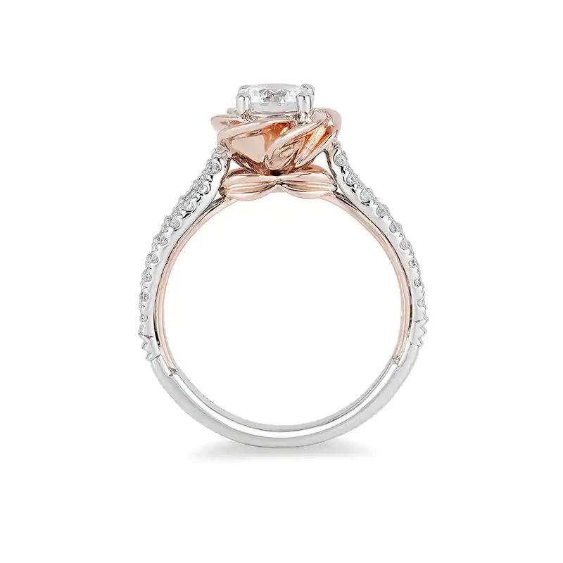 - The sculpted forever bloom in rose gold highlights a 3/4 ct. diamond center stone.